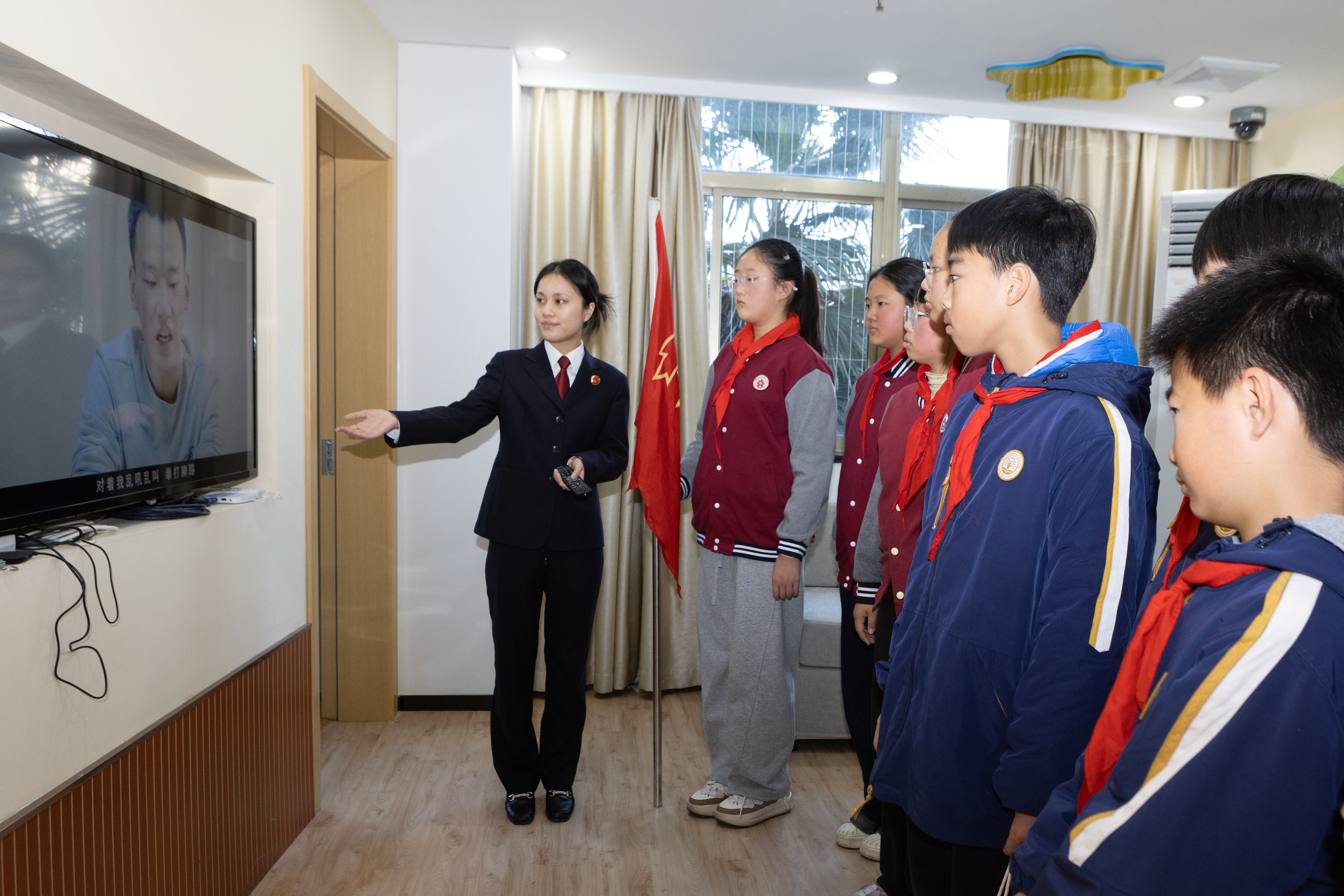本次活动采用“走出去+请进来”相结合方式开展。一方面,我该未检团队围绕青少年特有的心智与认知等主题,精心设计宣讲内容,走进学校耐心讲解宪法中未成年人权益保护的核心条款。另一方面,该院邀请学校师生至院未成年人检察办案区参与模拟检察听证等活动,让学生们结合未成年人检察工作中的真实案例,撰写模拟听证剧本,并通过“看、讲、演、问”等方式,使其沉浸式了解未成年人检察工作内容与流程,感受法律威严与尊重他人权益的重要性,让法治的种子在孩子们心中生根发芽。
