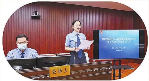 温可红(右)对百草枯投毒杀人案出庭支持公诉。